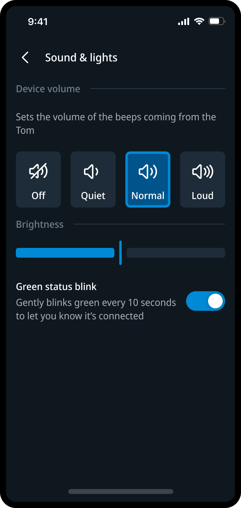 The companion experience was designed while the hardware was still in development, meaning the interaction model had to be defined from scratch. I worked closely with engineering to establish the core settings system — alert categories, sound and light logic, update flows, and device states — translating prototype capabilities into a coherent, understandable product behavior.