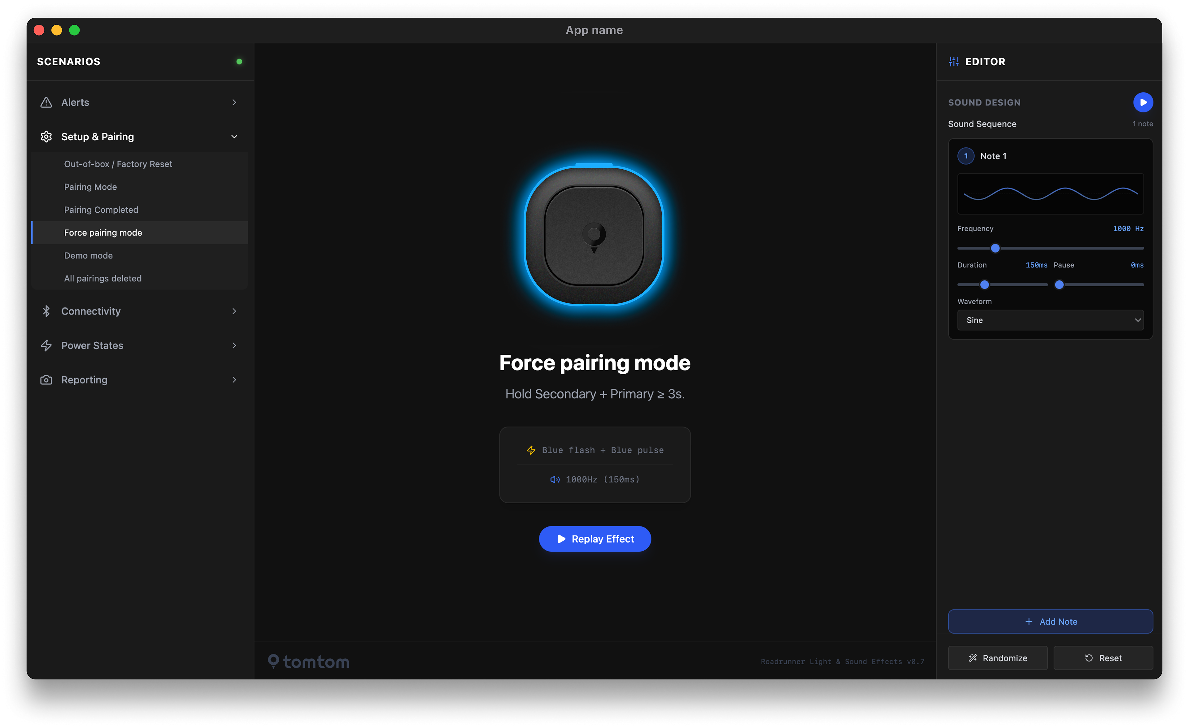 Working as a freelance product designer at TomTom in Amsterdam, I designed the mobile companion app and the interaction behaviour of their latest consumer device. The work spanned UX and UI design, device-level behaviour, and prototyping, in close collaboration with product, hardware, and engineering teams.