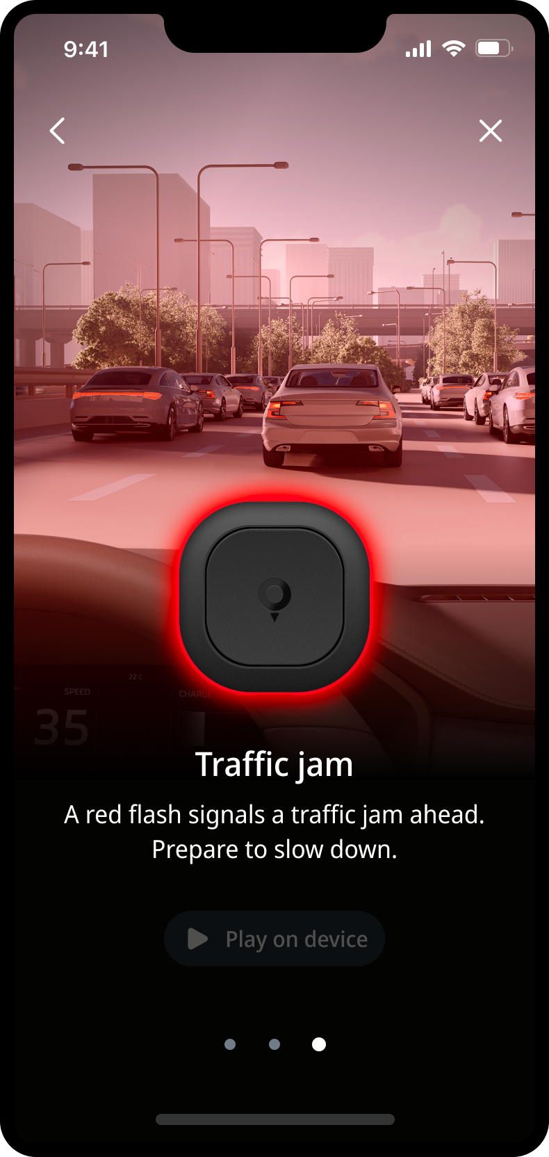 To help users quickly understand the device, I designed short in-app tutorials that explain core light and sound behaviours. Each micro-lesson shows a single pattern with precise timing and simple context, so users learn by seeing rather than reading. The tutorials are optional, calm, and easy to revisit, giving drivers confidence without adding friction to the experience.
