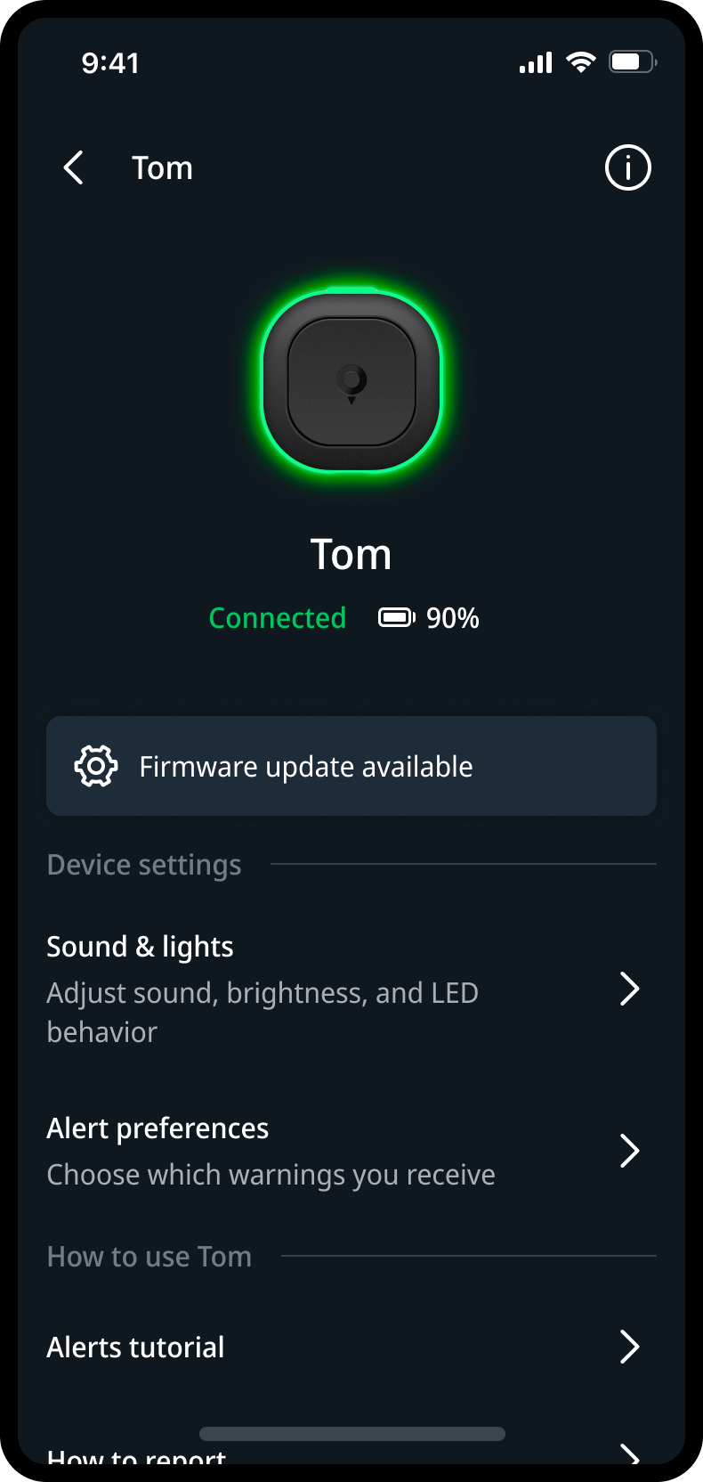 The companion experience was designed while the hardware was still in development, meaning the interaction model had to be defined from scratch. I worked closely with engineering to establish the core settings system — alert categories, sound and light logic, update flows, and device states — translating prototype capabilities into a coherent, understandable product behavior.